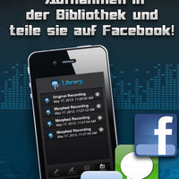 Even better, you can record your voice while it is modified to share it by email, share it on facebook or play it back later.
