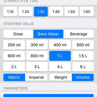 • Conversions for volume and weight measurements and U.S. Standard (English) to Metric units are supported in any combination. Design recipes for Drip can be directly converted to/from Infusion/Immersion methods, while maintaining identical extraction and strength relationships.