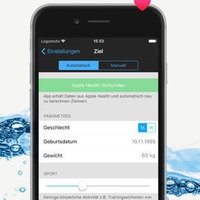 App is integrated with Apple Health. It calculates the goal amount and writes data about your water consumption.