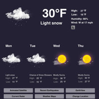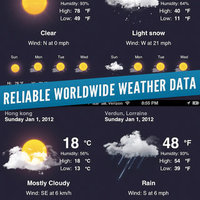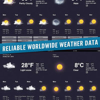 Reliable weather data is provided for most cities and countries worldwide. Traveling and need the weather? No problem. Support for virtually every location on earth by entering the name: i.e. "Tokyo" or "Dallas" or if you live in the United States and the United Kingdom, your local zip code.