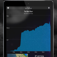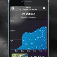 Weather Nerd also gives you minute-by-minute rain predictions for your exact GPS location. Powered Dark Sky's cutting edge "hyperlocal precipitation forecasting system", these reports show you a nice graph of the rain intensity for the next hour based on your exact location. For example, you might see: