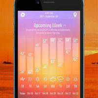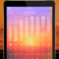The weekly forecast shows you a quick graph of the projected highs and lows for the next week, along with the chance of rain. Touch any day to view the full forecast for that day.