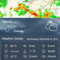 With Weather Radar Canada you can see the weather current conditions and weather forecast of any location in Canada, as well as any location in the world. You can save a preset of locations to easily browse through the weather in your favourite locations. Of every location you can see the current conditions, like temperature, wind, humidity, pressure etc as well as a detailed hourly and 10-day daily forecast.