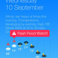In addition app will display current temperature at it’s icon pulled from local network of weather stations.