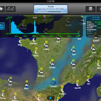 Weather4D PRO is the first application to use the power of GPU for iPad and iPhone to animate the weather like a video. 2D or 3D display is complemented by the continuous scrolling of time which allows to perfectly visualize the evolution of weather phenomena to come. The automatic scrolling can be accelerated or slowed manually by forward or backward in time by simply sliding a finger or by time increments through taps on icons "next / previous".