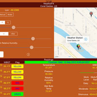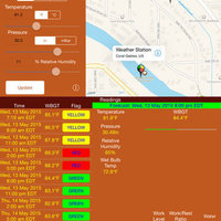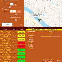 Once you accept the prompt to acquire the GPS position, the Latitude and Longitude labels will be populated. Click the “Update” button and the app will populate the temperature, pressure and humidity text fields based the closest weather Station ID to your position. The app will then calculate the wet bulb and WBGT temperatures. You'll also notice that the WeatherFX app will place the location name and time of the reading at the top of the screen. This way you will know if the readings are in your location and timely.