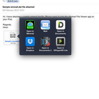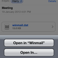 A: This app will ONLY open the winmail.dat attachment, but for any file contained inside the winmail file you will either need the functions/default apps of your iPhone or iPad OR you'll need to install other apps to open Word, Excel, PDF, large Image files, zipped files, Audio and Video files.