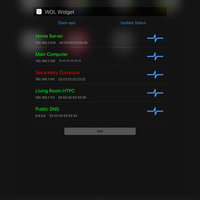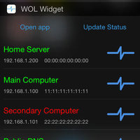 WOL Widget is a very simple and straightforward tool to power on your computers on your local network (LAN). You don't even need to open the app, as it's right there as a widget in the Notification Center (Today View), with a quick glance you know wether a computer/host is On or Off, and just a tap to wake it up!