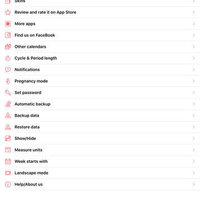 Reminders (Menstruation, Ovulation, Weight, BBT, Multivitamin pill, Breast self-exam, Contraceptive pill, NuvaRing, Contraceptive patch, Depo-Provera injection)