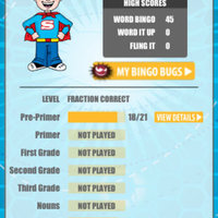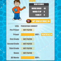 Listen to the word the BINGO Bug speaks and tap on the corresponding word on the screen. Get four words correct vertically, horizontally or diagonally to get BINGO and win! The quicker you get BINGO the better your score. Your score is based on time and the lower the score, the better. Earn a BINGO Bug when you beat your best score.