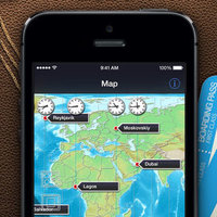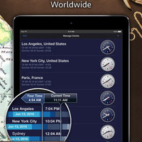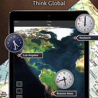 On the iPad version you get an overview. This screen gives you an overview of the time zones you have added as well as their location on the world map. Combine the World Clocks with a detailed view of the globe. Track other cities with this easy overview.