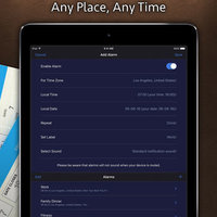 Plan an alarm for today, tomorrow or any other given date in the future. You can set alarms for the time zones you have added. We have included several alarm sounds. The alarm times are presented on the comparison view, so you have an easy-to-read overview of all your alarms. Alarms will also go off when you have the application closed or running another app.