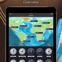 The iPad version also contains a screen which presents you your time zones with large clocks for a perfect overview of all the times from a greater distance of the iPad screen.