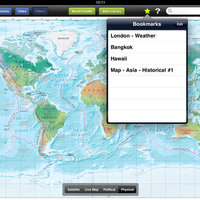 Maps: Travel the world with a sweep of your hand, and pinch to zoom in on a city or country, and then flip up a mini fact box with photographs, add details such as local airports, latest weather and exchange rates.