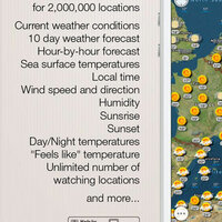 Planning a day at the beach or a boating trip? Are you curious about what the water temperature is at your favorite place to swim? World Weather Map HD is the fastest, easiest-to-use, weather application that displays current weather conditions and sea surface temperature directly on the map.