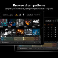 Our super intuitive browser and drum track editor lets you easily search and preview drum grooves matched with your music. With a simple tap of your finger you can easily arrange and edit your drum track in a seconds.