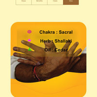 * Lists impacted Chakras, Ayurvedic Herb and Essential Oil for each Mudra.