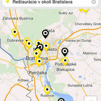 •Zobrazené výsledky hľadania sa dajú prehliadať v zozname a na mape.