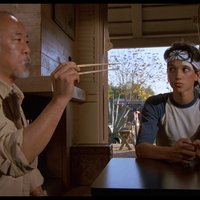 And, I've only just recently found out, the superlative scene where a drunk Mr Miyaga recounts the death of his wife and unborn son in an internment camp was nearly left on the cutting room floor!!