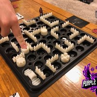 The only real issue I’ve run into with this game has to do with the components themselves. The board is an 8×8 grid, with the layout set up in secret by the Vampire player. On a regular player turn, you can feel up to 1 space in each adjacent direction to your current location. The only issue is that sometimes, unless the player is diligent, they could accidentally (or purposefully?) feel too many spaces than are allowed – either diagonally or 2 or more spaces away, for example. The way I’ve come up with to alleviate this issue is to have players use only 1 finger when interacting with their piece/the board. That way there can be no extra feeling. And I also, as the Vampire player, will move player pieces for them – the player tells me in which direction to move and I move the piece before guiding their hand back. Maybe if the board were a little larger, this problem would be eliminated? I’m really not sure, but the method I’ve come up with to combat it has worked well so far!