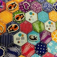 Similarly, but with colors, are the rainbow scoring button tokens. Each patch tile contains a color and a pattern. Cats are attracted to patterns, whereas buttons are sewn onto similar colored tiles. Match up three tiles of the same color and you can sew a button onto your quilt. Buttons are worth 3 points and they just look great on your quilt.