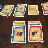 We take this with us on vacations, we don't even bother to bring the flags, since we usually can find rocks or shells or something to mark the locations when we get there. So really it's just a deck of cards. The game is quite simple and elegant, you play a card and draw a card. playing a card sends it to a particular battlefield, and a max of three cards can be played on any one field. if your side of the flag is stronger you win that battle, either 3 wins in a row or more over all flags wins. The cards can be used to make different sets, with a pokeresque hierarchy of sets. we play this one bast 2 of 3, as we tend to finish a game in 10 minutes or so. This is a great little game and is known by several names including Schotten Totten, and I've seen lots of fan made re-skins including peanuts characters and other pop culture icons that would definitely not be legal to produce except for personal use.... what theme would you use if you had the time and energy to make your own version....
